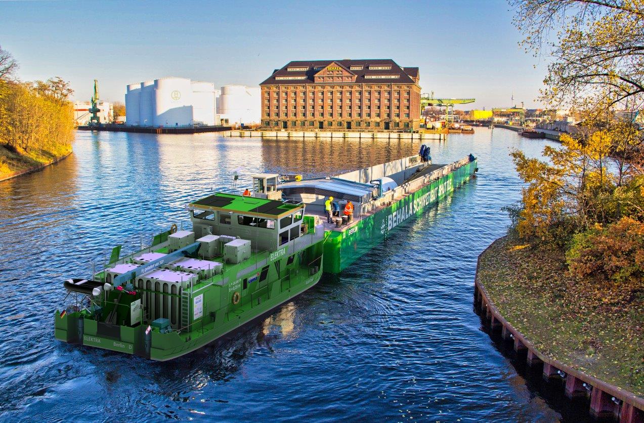 In Berlin’s Westhafen, the Mayor of Berlin Franziska Giffey named the push boat ELEKTRA! After almost two years of construction at shipyard Hermann Barthel GmbH in Derben and the transfer to the Westhafen in Berlin, the long-term testing of this unique, innovative and emission-free push boat begins.